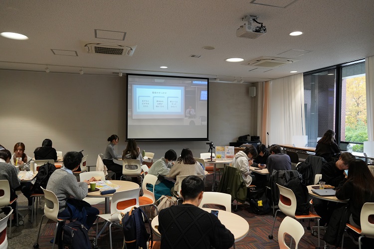 2025年11月,附属図書館中央図書館ブックラウンジで,文理融合の学修プログラム「先導STEAM人材育成プログラム(KU-STEAM)」(※)を紹介するランチョンセミナー(秋企画)を計2回開催し,本学学生および教職員が数多く参加しました。