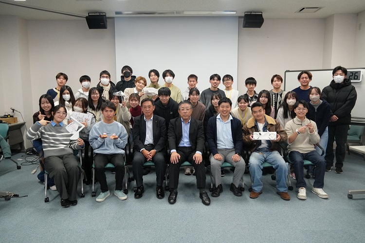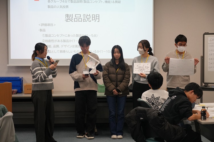 履修者からは,「ペーパーワークをすることで,商品開発における自由な提案を出せる雰囲気を作り出せたと思う」「モノづくりは,こだわりだけでなく,予算や時間といった制限の中でしないといけないというビジネス的な観点を養えた」「実際に企画から製作,プロモーション等を行うのは初めてで新鮮でした。とても楽しめながら行えました」といった声が寄せられました。