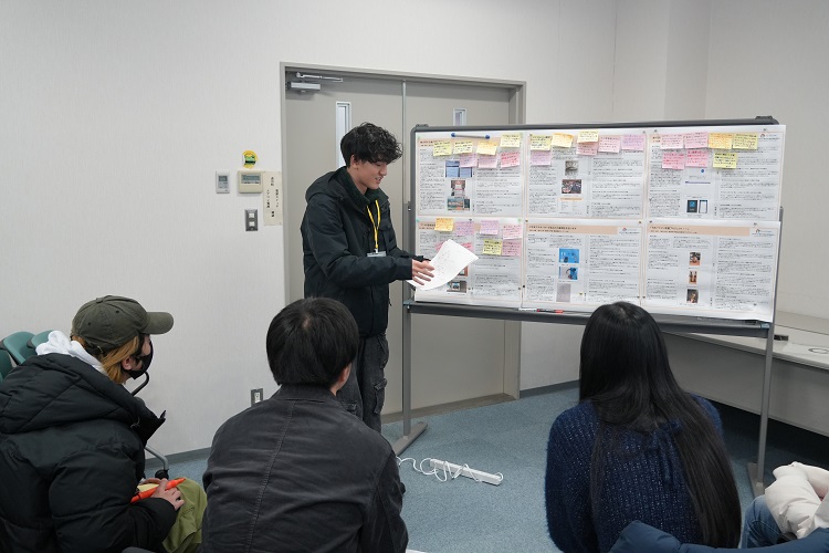 最終日となる1月24日(土)には,前回の授業から約1ヶ月の期間で実際に行ったアクション(ちょこプロ)についてポスターセッション形式で成果を発表しました。受講者は講師や他の受講者からのフィードバックを通じてプロジェクトの振り返りと学びの内省を行いました。