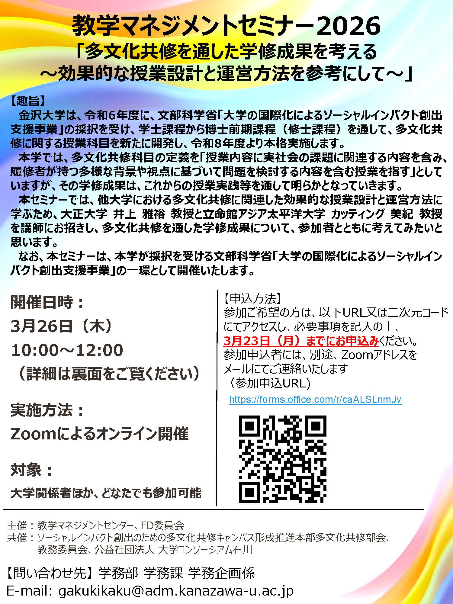 なお,本セミナーは,本学が採択を受ける文部科学省「大学の国際化によるソーシャルインパクト創出支援事業」の一環として開催いたします。